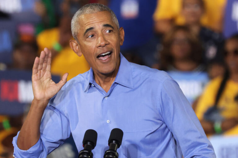 “And if Congress passes a bill to restore the reproductive freedom that women had for nearly 50 years, the freedom that Donald Trump bragged about taking away, Kamala will sign it into law,” Obama said.