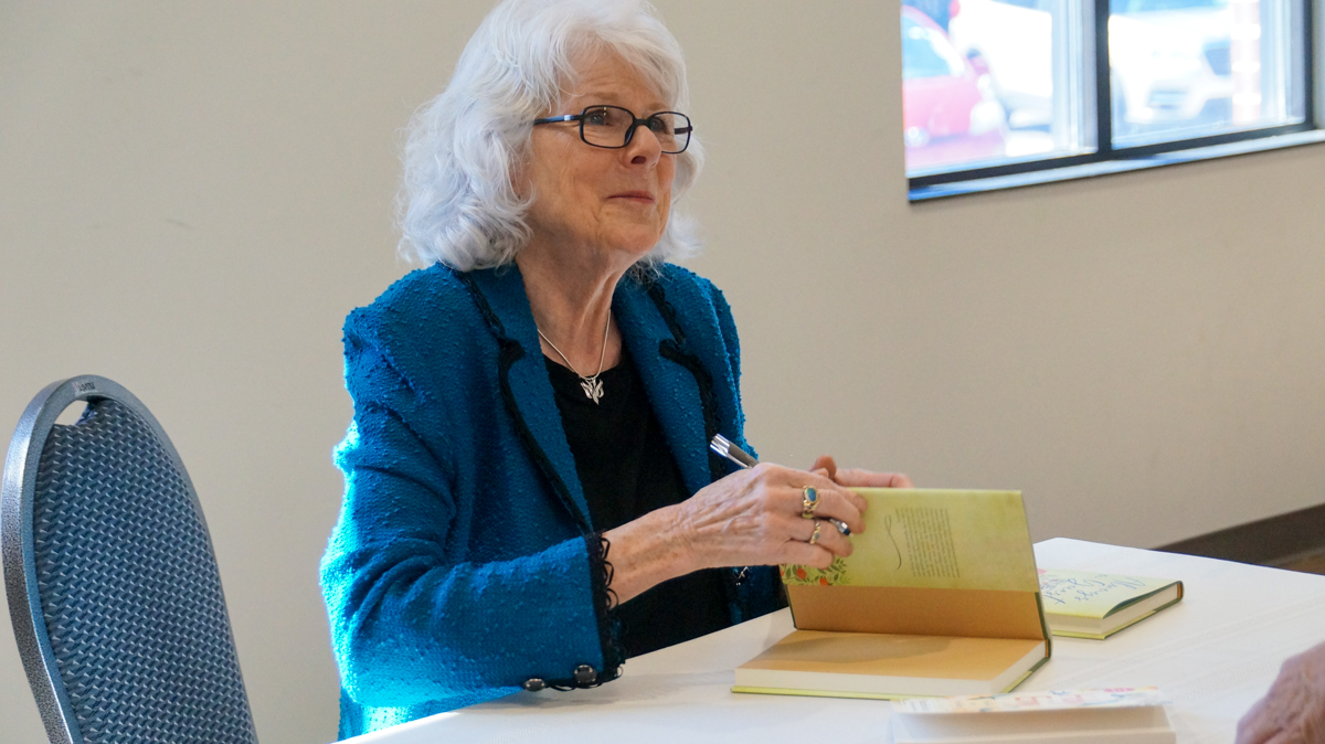 She spoke about the importance of libraries in the community and her relationship with the Clarkesville library to a room packed with members of the Friends of the Clarkesville Library, fans of her books and followers of her teachings.
