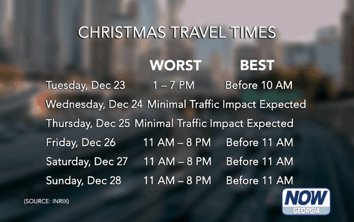 ATLANTA, Ga. — Drivers heading out for Christmas and New Year’s trips should plan carefully as record holiday travel crowds Georgia’s highways.
