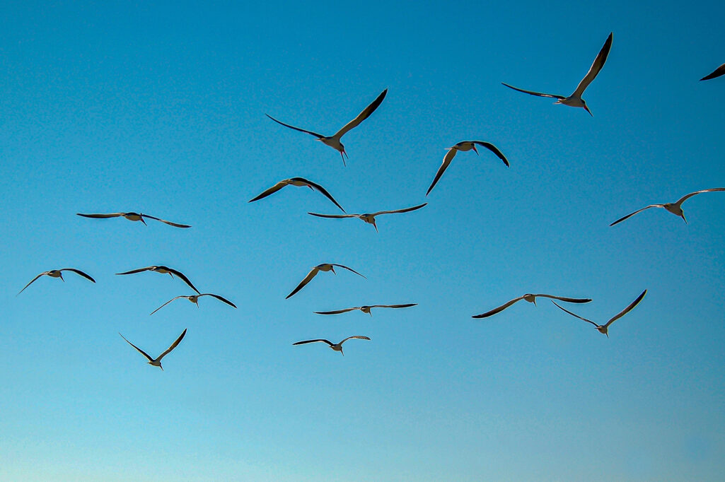 It was one of those weird mornings where the sun wasn’t really shining and the light seemed a little eerie. But once I walked out from under the trees, there were birds everywhere in the sky. They flew from one limb to another and back again. They crossed the meadow in flocks, moving as one. They circled above the lake, gliding on the wind currents. It felt like they were celebrating getting through the night as much as I was.
