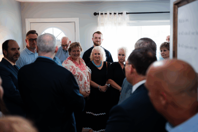 Family members of the late Danny Watters attend the dedication ceremony for a pastor's retreat cottage named in his honor on July 21, 2025. (Brandi Wood/TMU)