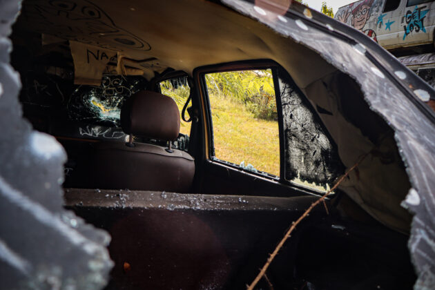 “This is a running automobile,” Walter said, pointing to one vehicle that had been damaged. “They’re not just destroying pieces that are here, but running equipment.” (Katelynn Hulsey/Now Habersham)