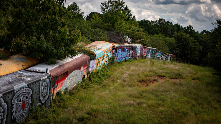 Now, more than 120 buses line the Wades’ property along GA Highway 23, their rusted shells covered in murals. Artists have come from Quebec, Los Angeles, Las Vegas, Tampa, and even Ireland. Visitors have traveled from Japan, Iran, Norway, and Ethiopia just to see it.