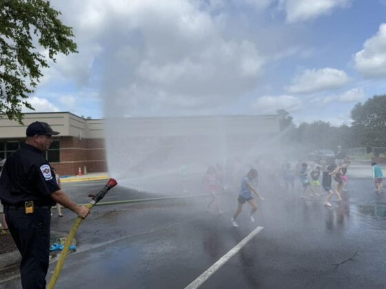 Students cooled down with Kona Ice and learned about the Toccoa Fire Department's work, which included a live demonstration with the fire hose. (Stephens County Sheriff's Office/Facebook)