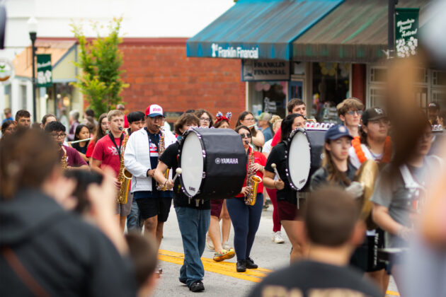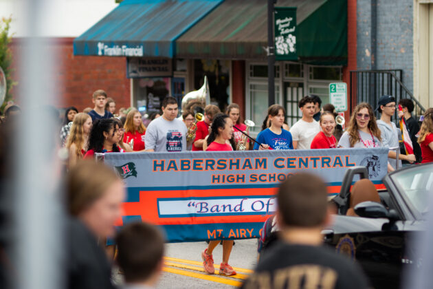 The Habersham Central High School Marching Band of Blue added energy to the Mountain Laurel Festival Parade on May 17, 2025. The parade included over 60 entries. (Daniel Purcell/NowHabersham.com)