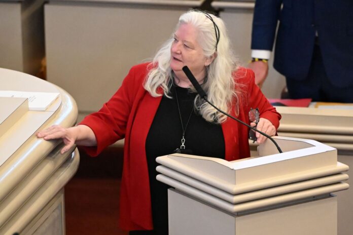 Rep. Margie Wilcox, R-Mobile, speaks on the floor of the Alabama House of Representatives on Feb. 5, 2026 at the Alabama Statehouse in Montgomery, Alabama. The House of Representatives passed her bill that increases the penalty for driving under the influence. (Brian Lyman/Alabama Reflector)