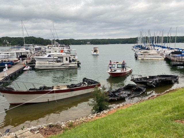 Before firefighters arrived, lake resident Richard Pickering captured the blaze on video. He lives half a mile from the marina and says he went to check on things when he saw smoke but didn’t hear any fire trucks.
