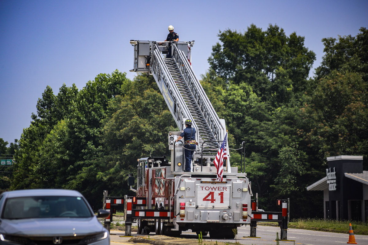 The Baldwin Fire Department suspended a massive American flag from its ladder truck over the Highway 441 Bypass. It waved in the breeze as the succession of three dozen vehicles escorting Alford’s body passed under it.