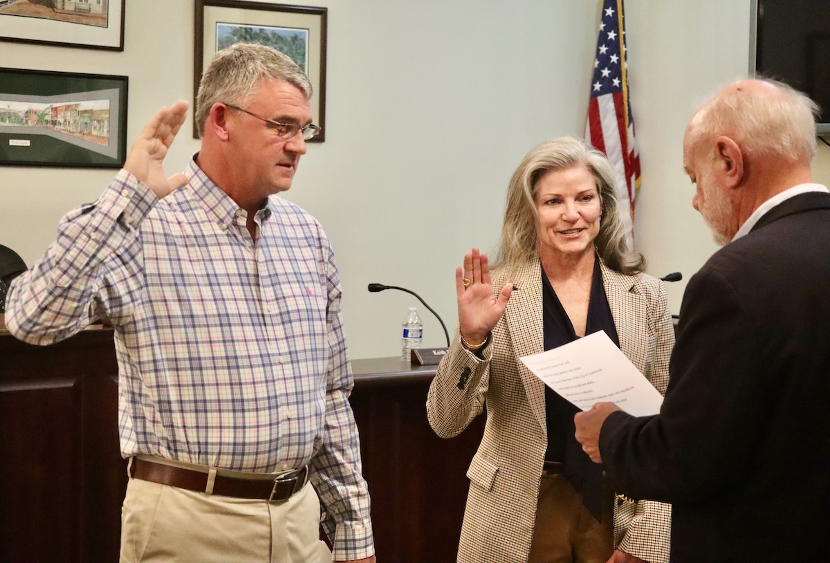 Brown took the oath of office administered by Pastor Hobie Wood of Christ Presbyterian Church. He then swore in newly elected council members Leigh Johnston and Blake Rainwater.