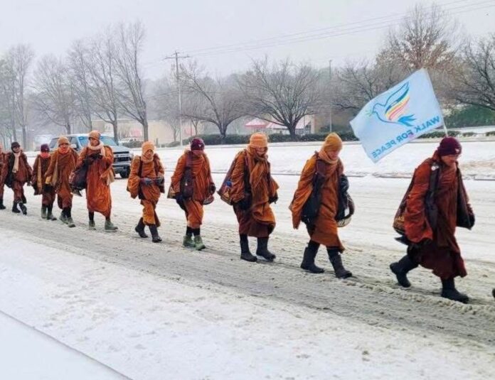 Buddhist Monks continue ‘Walk for Peace’ despite winter weather