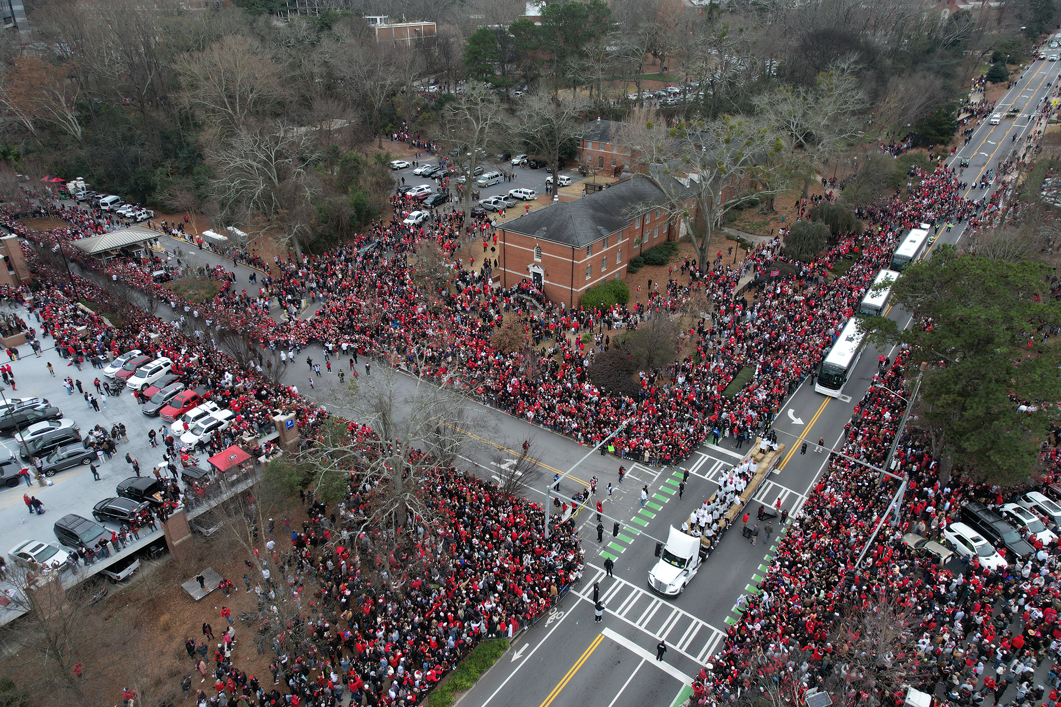 That celebration reached its peak on Saturday afternoon in Athens, when the university, the city, the team and the fans from near and far all came together for a party, first in the streets and then in the place the Bulldogs call home – Sanford Stadium.
