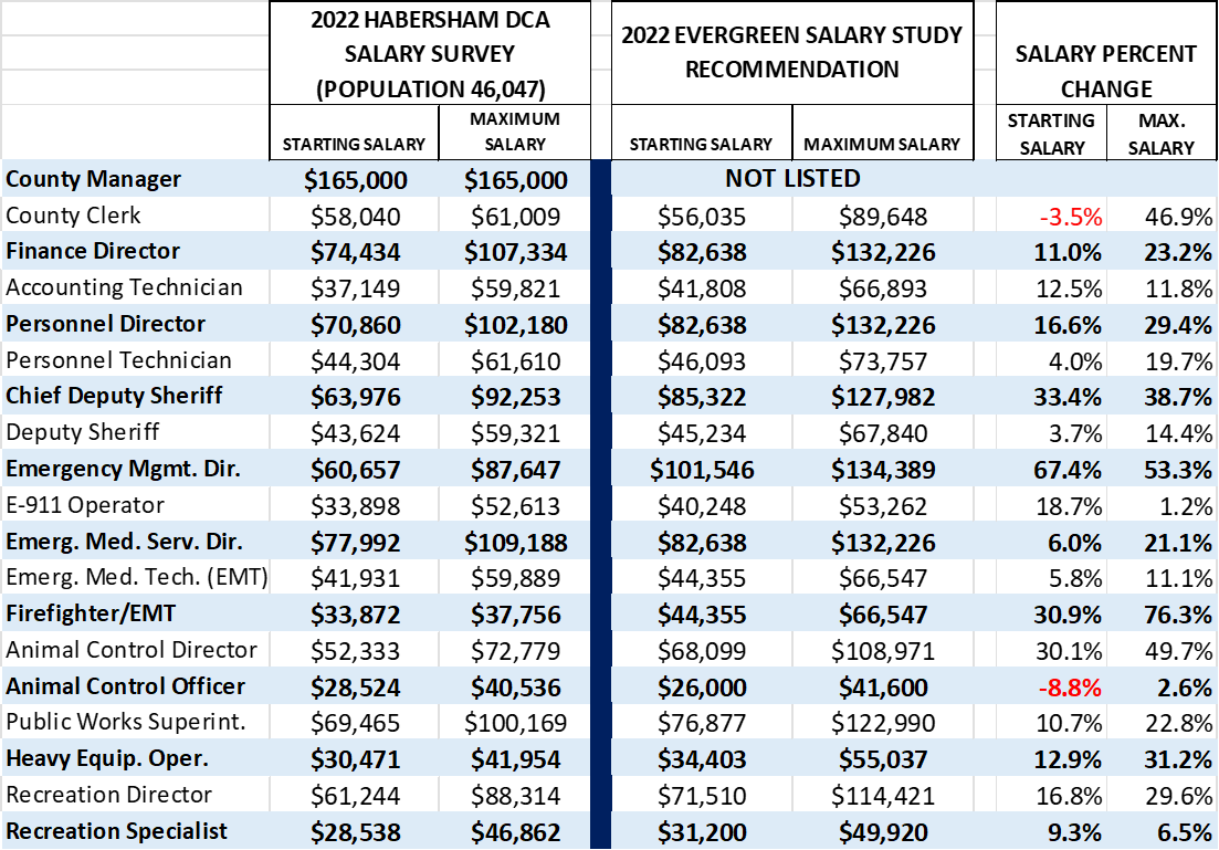 As you look at the table overall, Habersham County actually fairs much better in salaries for most positions when compared to other counties within their population group.
