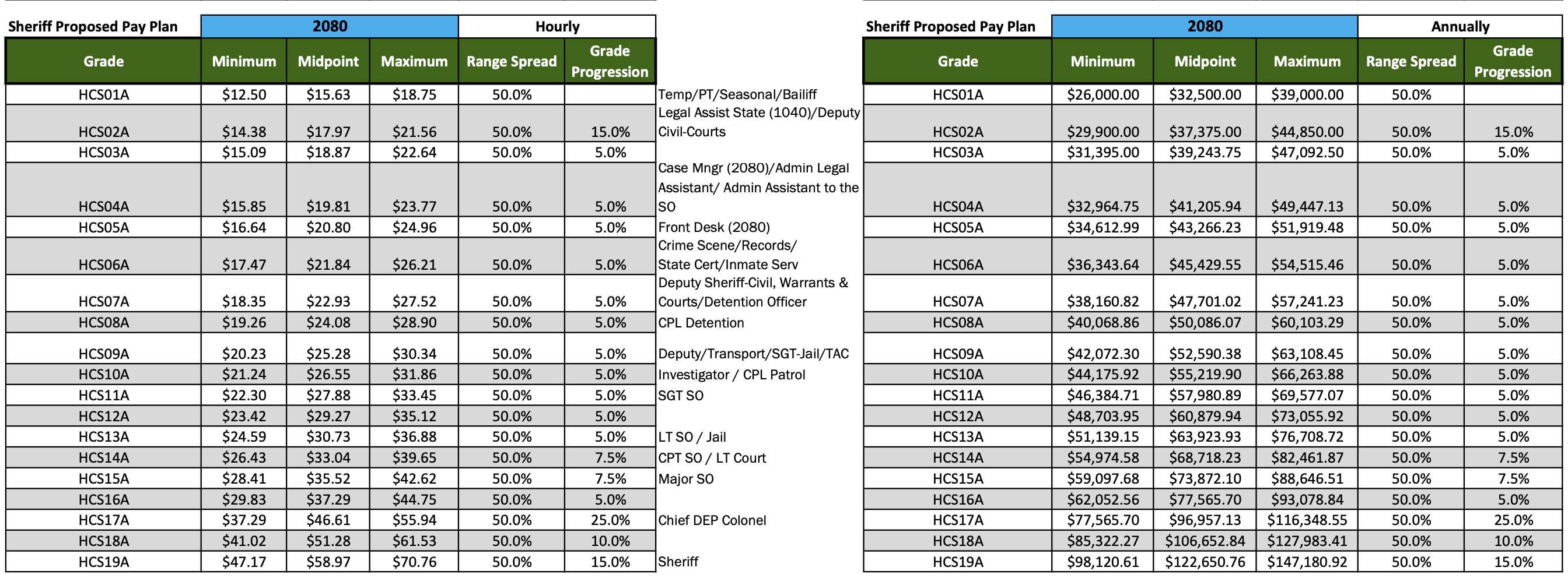 Based on the proposed pay tables the county commissioners approved Thursday, Sims has already maxed out of his salary range for a job he has held less than a year.