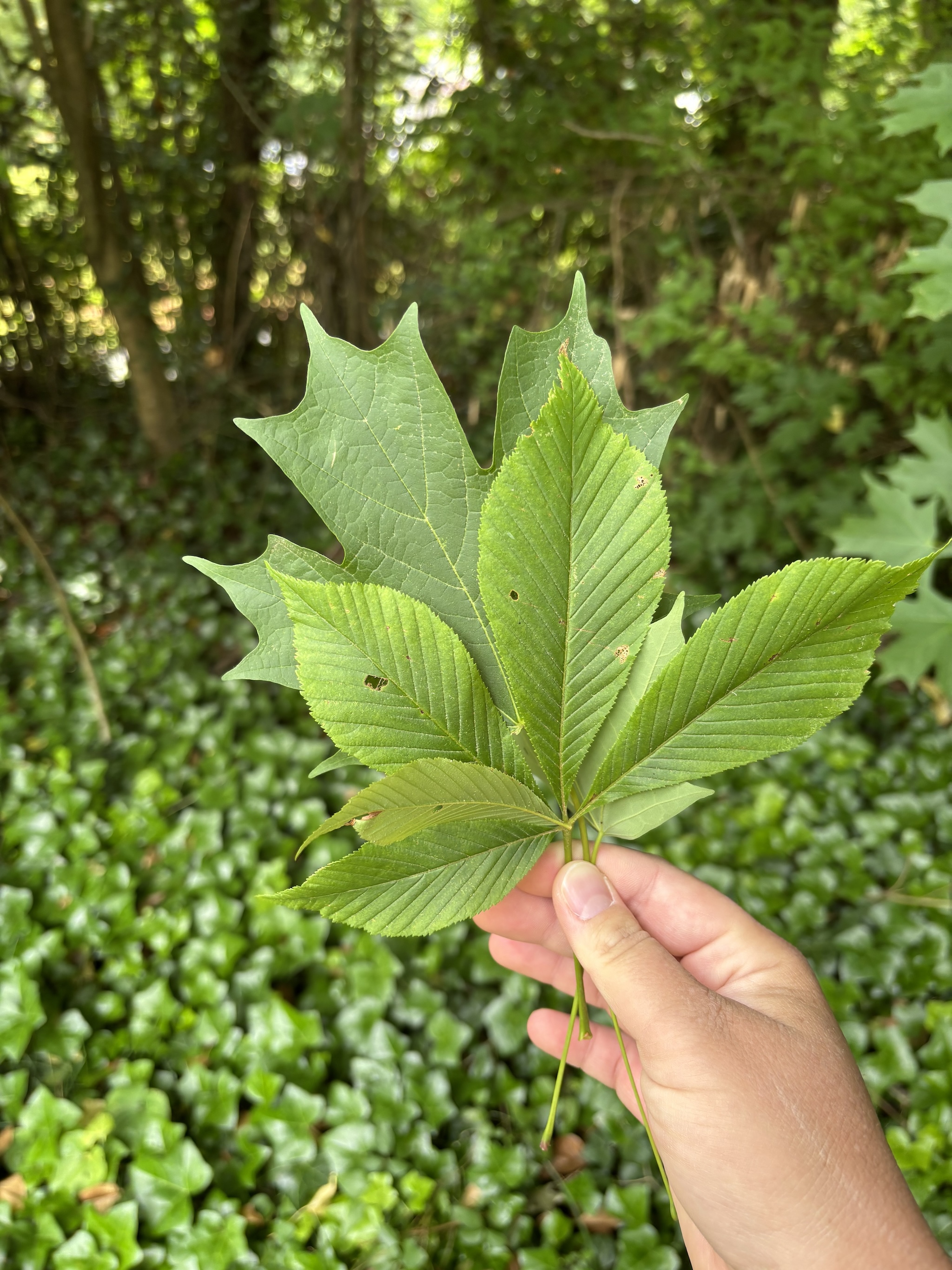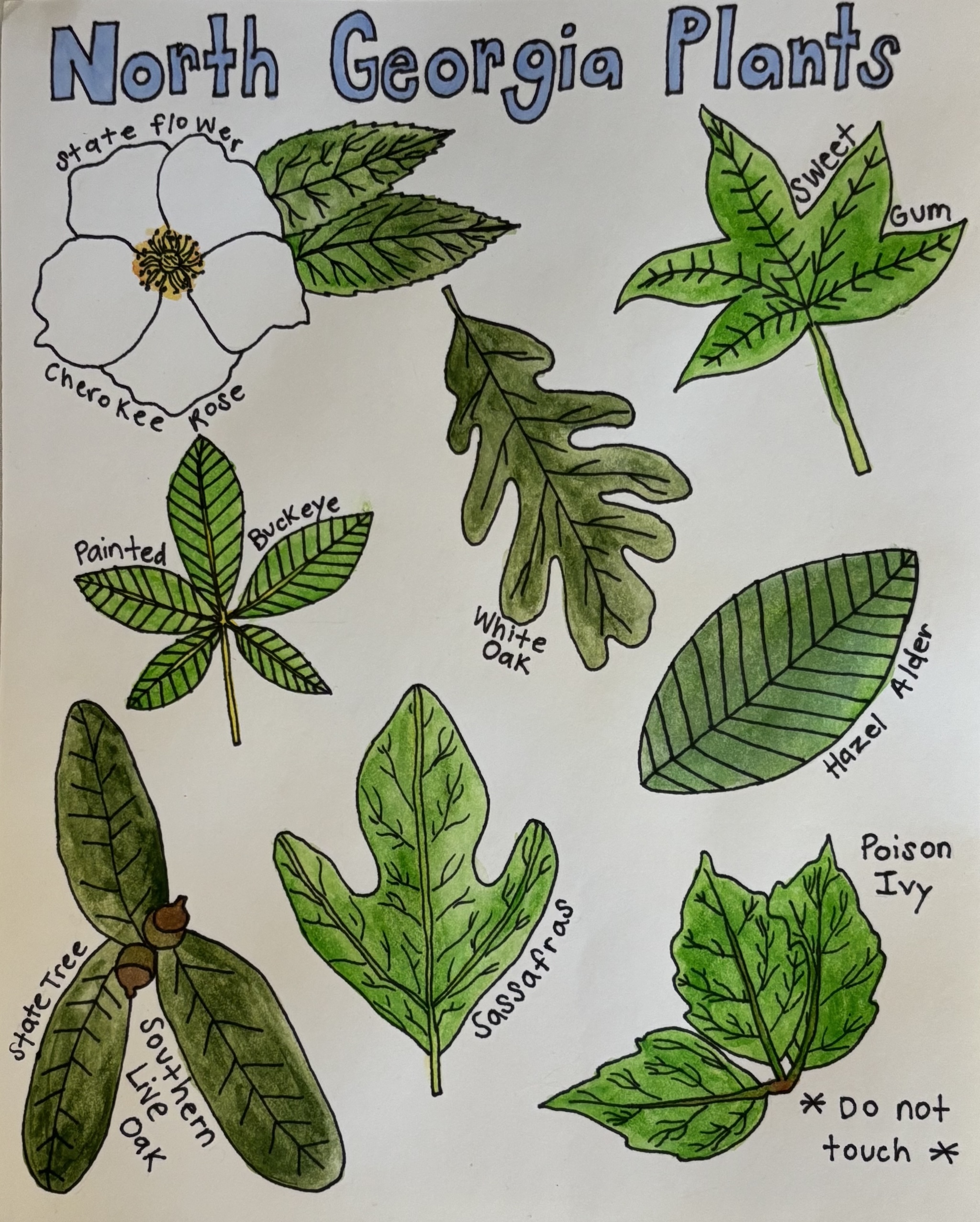 a. Use your leaf chart to identify which leaves are which. Make sure to NOT pick any poisonous plants, like poison ivy.