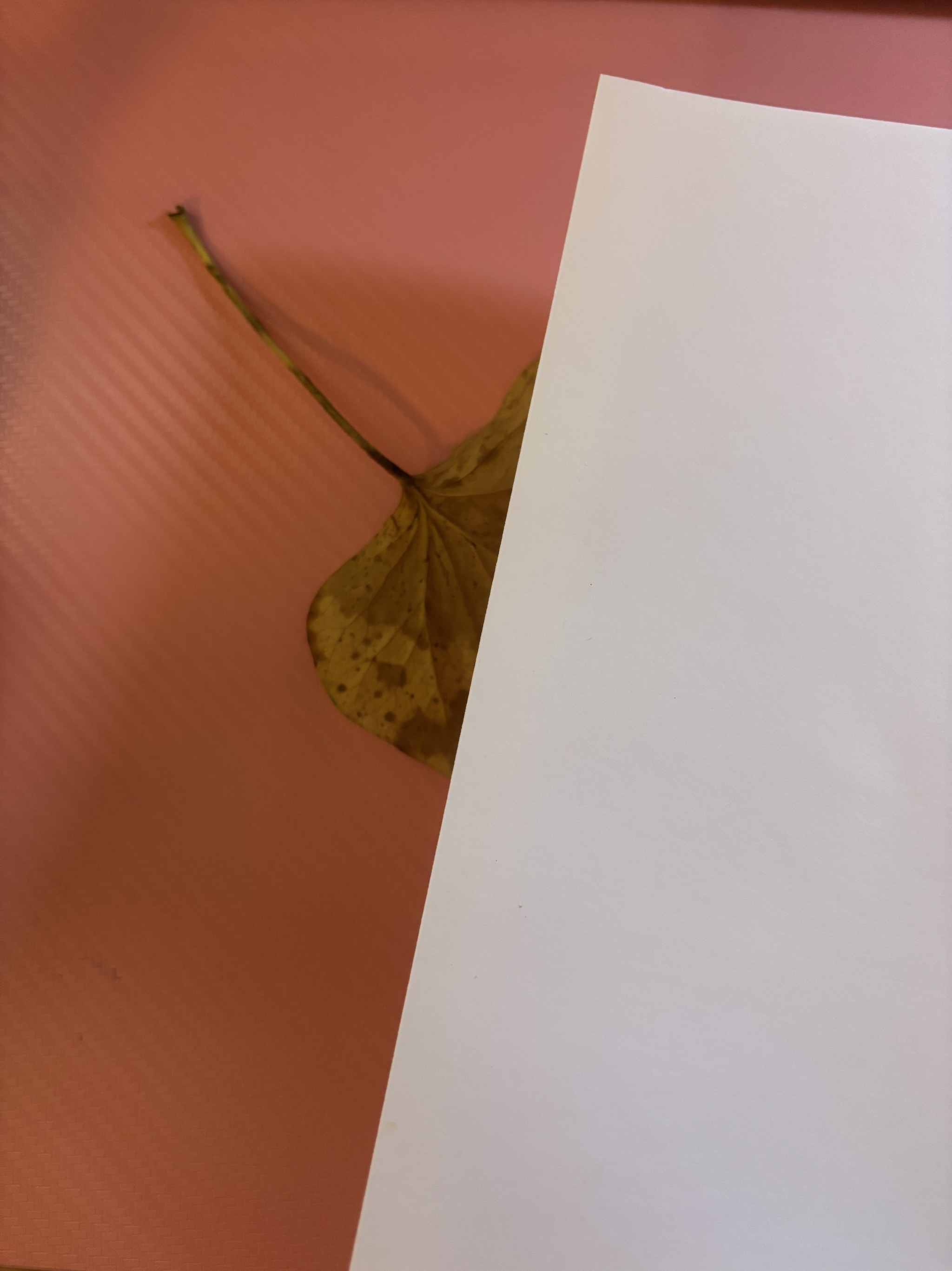 - Lay your leaf on a flat surface underneath your paper. Dry leaves will work better for this method.