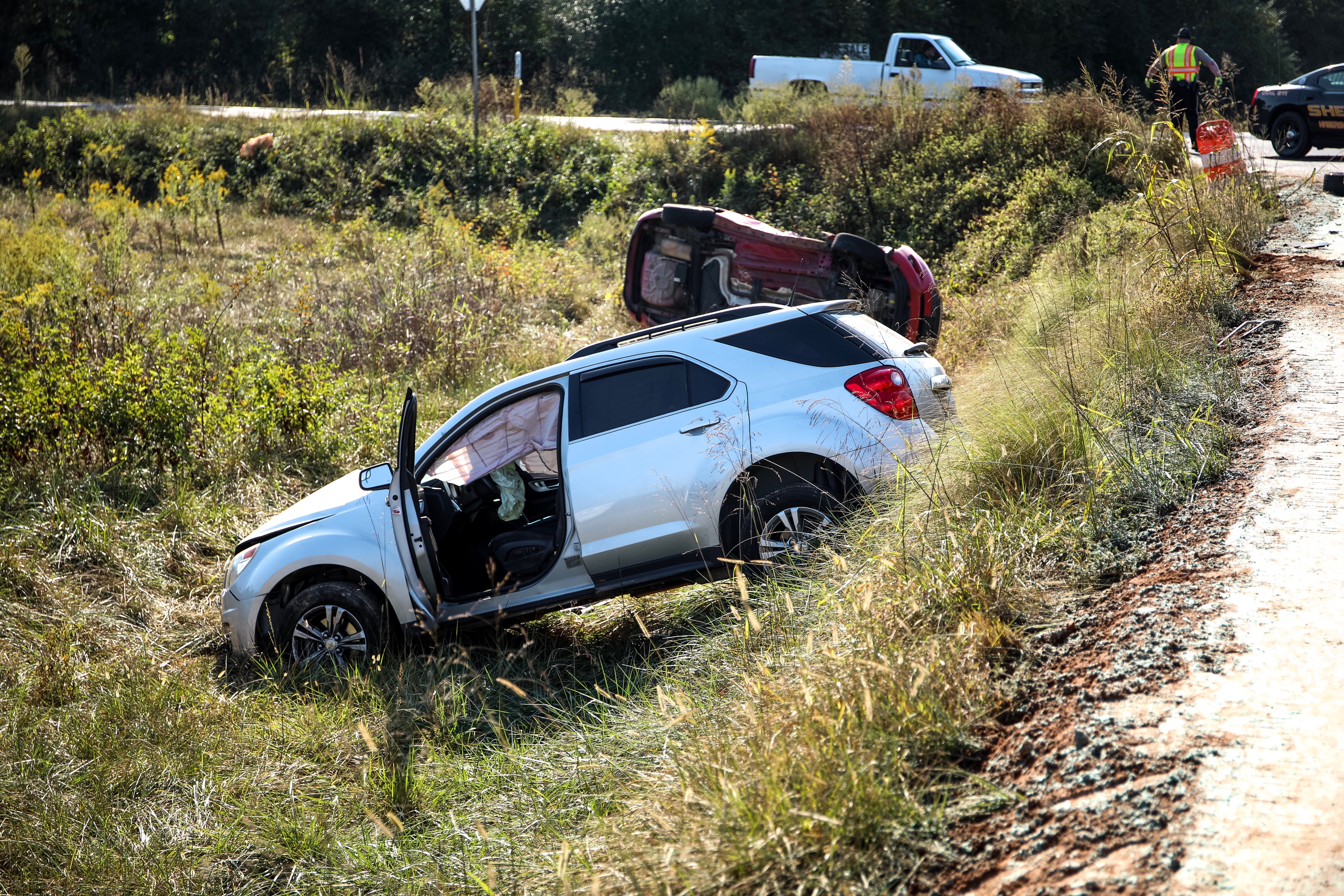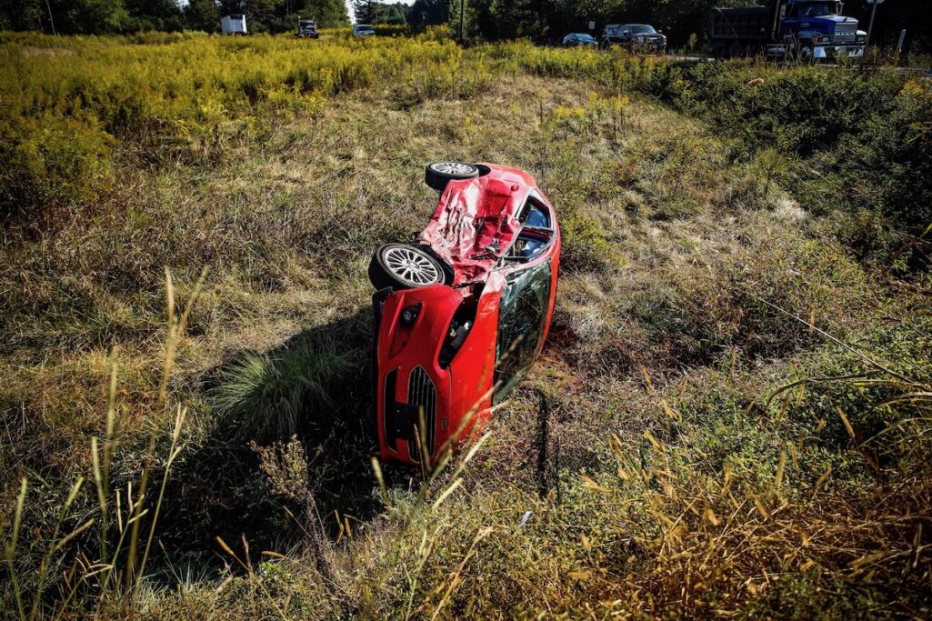 The wreck happened just before 10 a.m. Thursday, Oct. 3. The Georgia State trooper investigating the accident says the red Ford Fiesta involved in the wreck was traveling southbound on Cannon Bridge Road. The driver attempted to turn left onto Double Springs Road and failed to yield. A northbound Chevy Equinox T-boned the Fiesta on the passenger side. The impact pushed the Fiesta into a ditch, causing it to overturn. The Equinox would up on the side of the roadway with a smashed front-end.