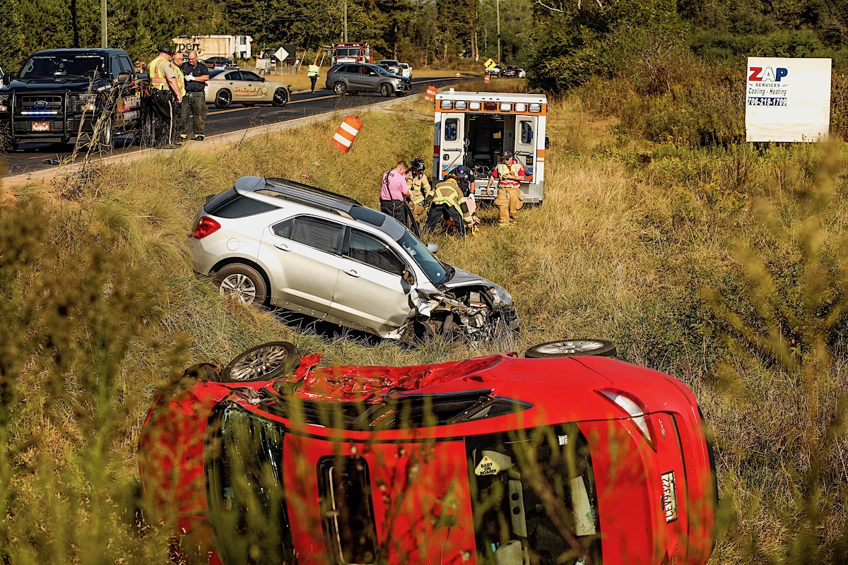 This is the second wreck involving an overturned vehicle on GA 105/Cannon Bridge Road just this week. On Monday, Sept. 30, a dump truck overturned south of where today’s accident occurred, spilling asphalt onto the roadway. The driver in that accident was also injured.