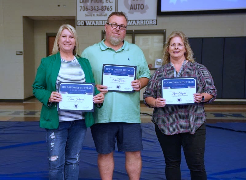 The bus drivers of the year who were recognized were Tina Johnson, representing the elementary schools; Steve Tucker, a middle and high school driver; and Lynn Taylor, a Special Education driver. Steve Tucker was announced as the system bus driver of the year.