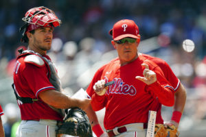 After getting blown out 13-1 in the opener of the two-game series between NL East rivals, the Phillies looked to be down to their final three outs when J.T. Realmuto grounded into what was ruled a double play with the Braves nursing a 1-0 lead.