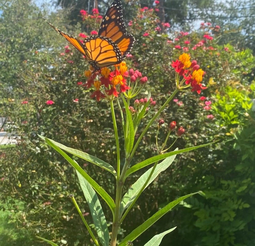 So how important are pollinators? Most flowering plants require pollination services from insects, birds, and bats. The others use the wind to carry pollen between plants or have self-pollinating techniques which don’t require insects to transfer pollen (like tomatoes and peas). Always the farmer’s friend, pollinators fertilize about 75 percent of the crops grown for food and that translates into one of every three bites of food is connected to a pollinator. Billions of dollars are generated through agriculture every year and the key link to this success is the continued conservation of pollinators. Butterfly houses and hummingbird feeders also provide a place for our flying friends to rest and eat on their long journeys.