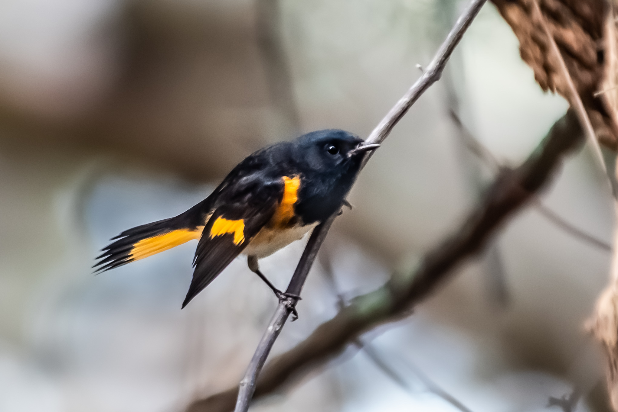 American Redstart: We saw this bird for the first and only time near Blairsville. He was deep in shrub and tree branches. We went back for three days hoping to see him again. His coloring of black and dark orange-red is distinct and beautiful.