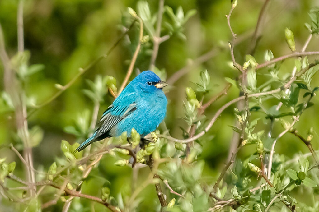 Indigo Bunting: On the same day we saw the first Blue Grosbeak, we saw the Indigo Bunting. Both were in trees around the Clarkesville Greenway. It was interesting to see how many people walked within a few yards of them and never saw them. The Indigo Bunting is another beautifully colored bird, lighter in blue than the Blue Grosbeak but every bit as beautiful.