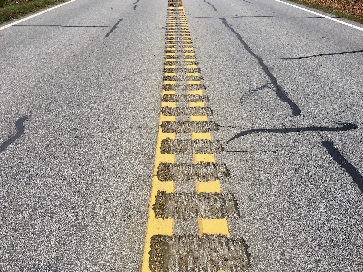 Although centerline rumble strips have been used in the past, they’re new to some of the roads where they’re now being applied.