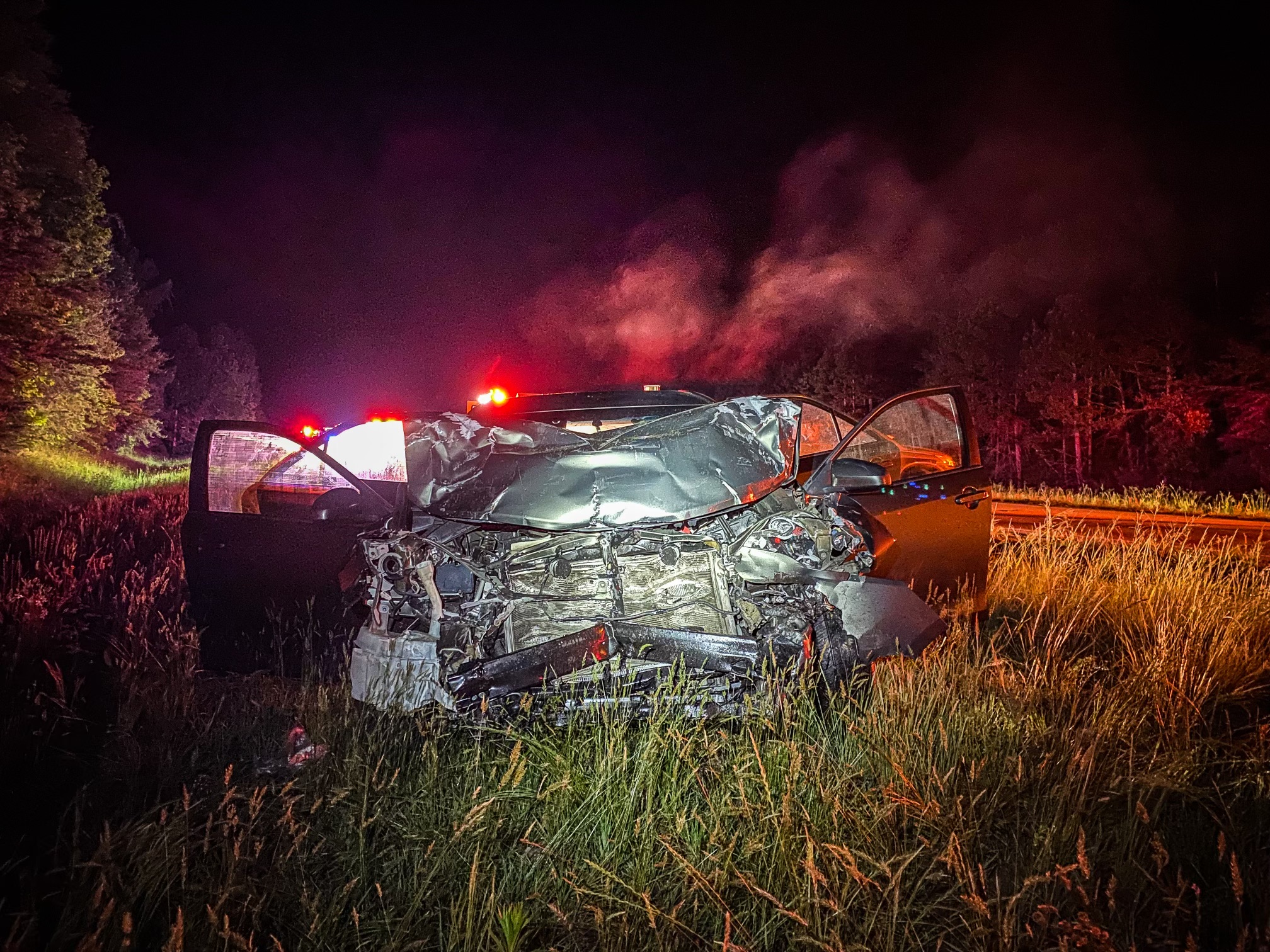 This article has been updated to reflect that five people were injured in the wreck and updates the make and model of the sedan involved