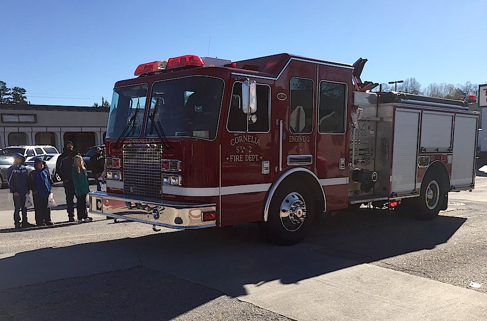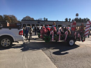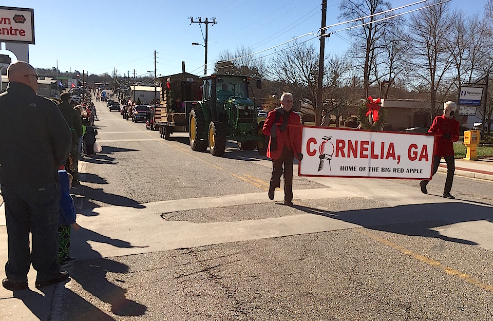 Cornelia’s Main Street has never looked as sharp as it did Saturday morning. The streetsides were lined with winter-coated parents telling their equally warmed children, “Be ready to catch the candy!” Eager eyes, old and young, watched as police cars, flashing their blue lights, slowly led the parade of decorated tractors, cars, pickup trucks with trailers – and people – down the hill from the Depot, toward the shopping area of North Main.