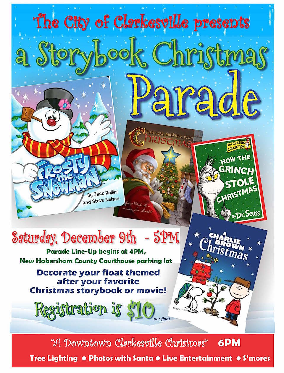 Parade entries should depict a favorite Christmas story in their costumes and decorations. “We are very excited to see how parade entrants and downtown businesses incorporate this theme into their decorations,” says Clarkesville Main Street Manager Mary Beth Horton, .