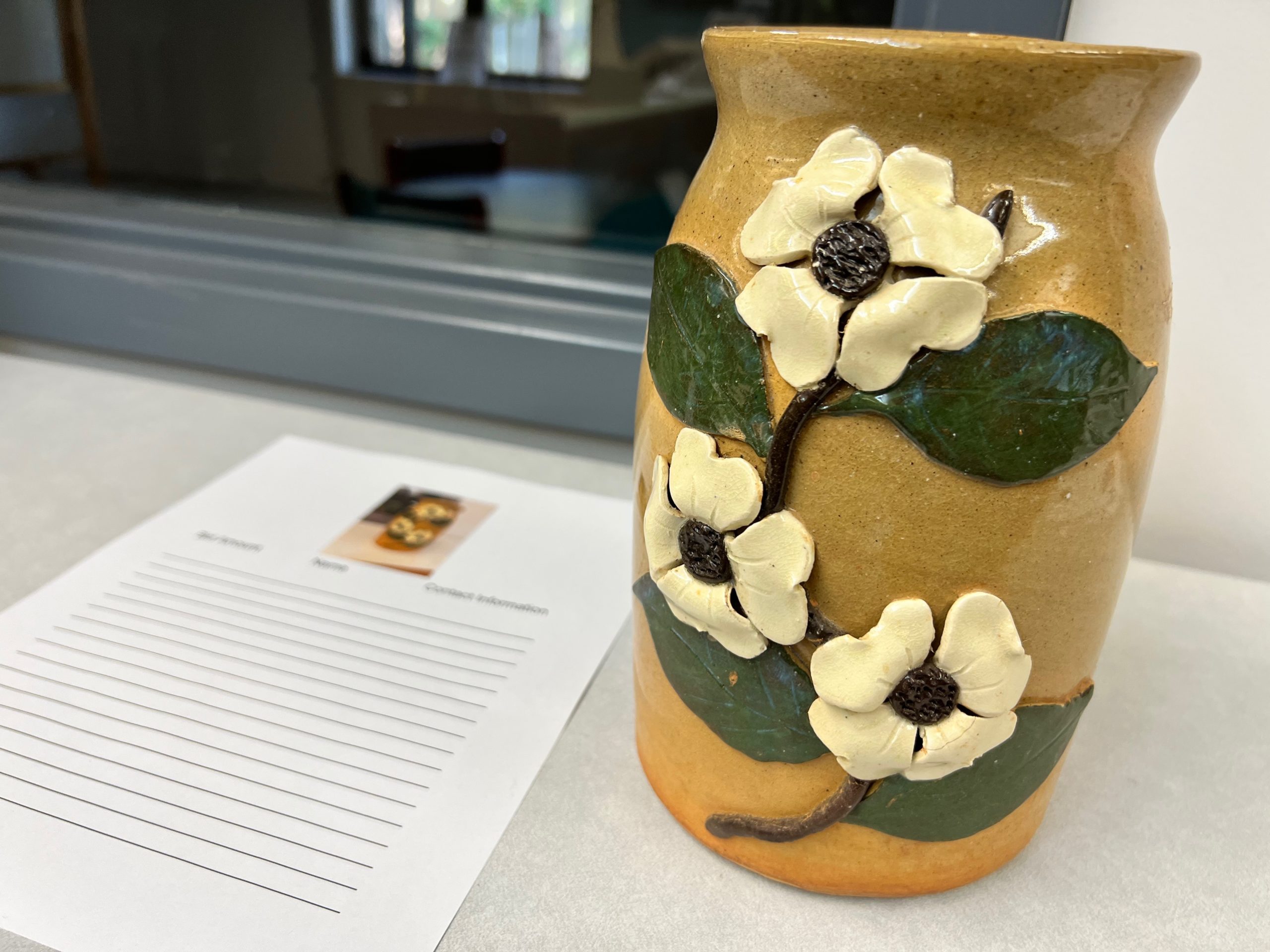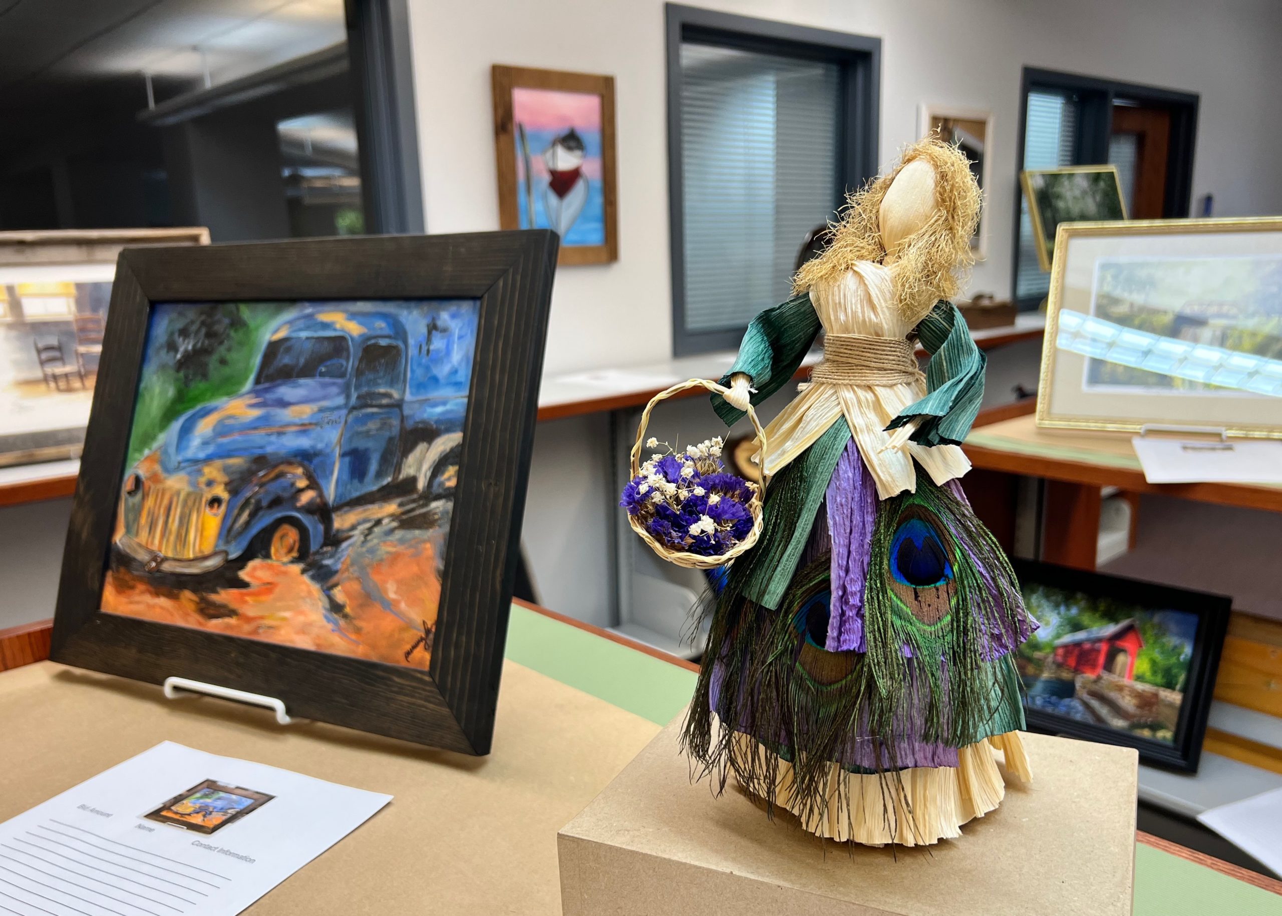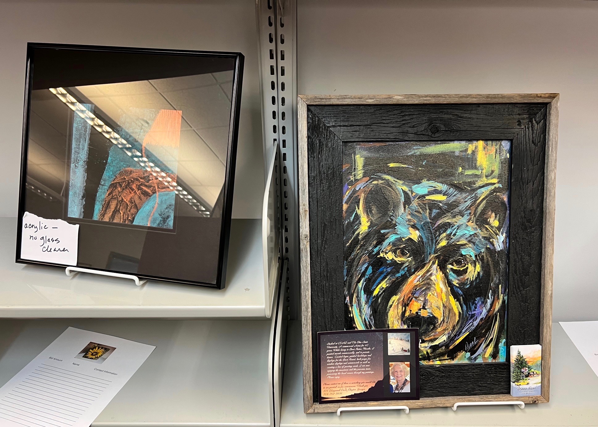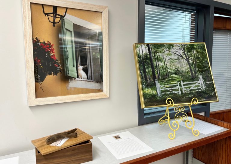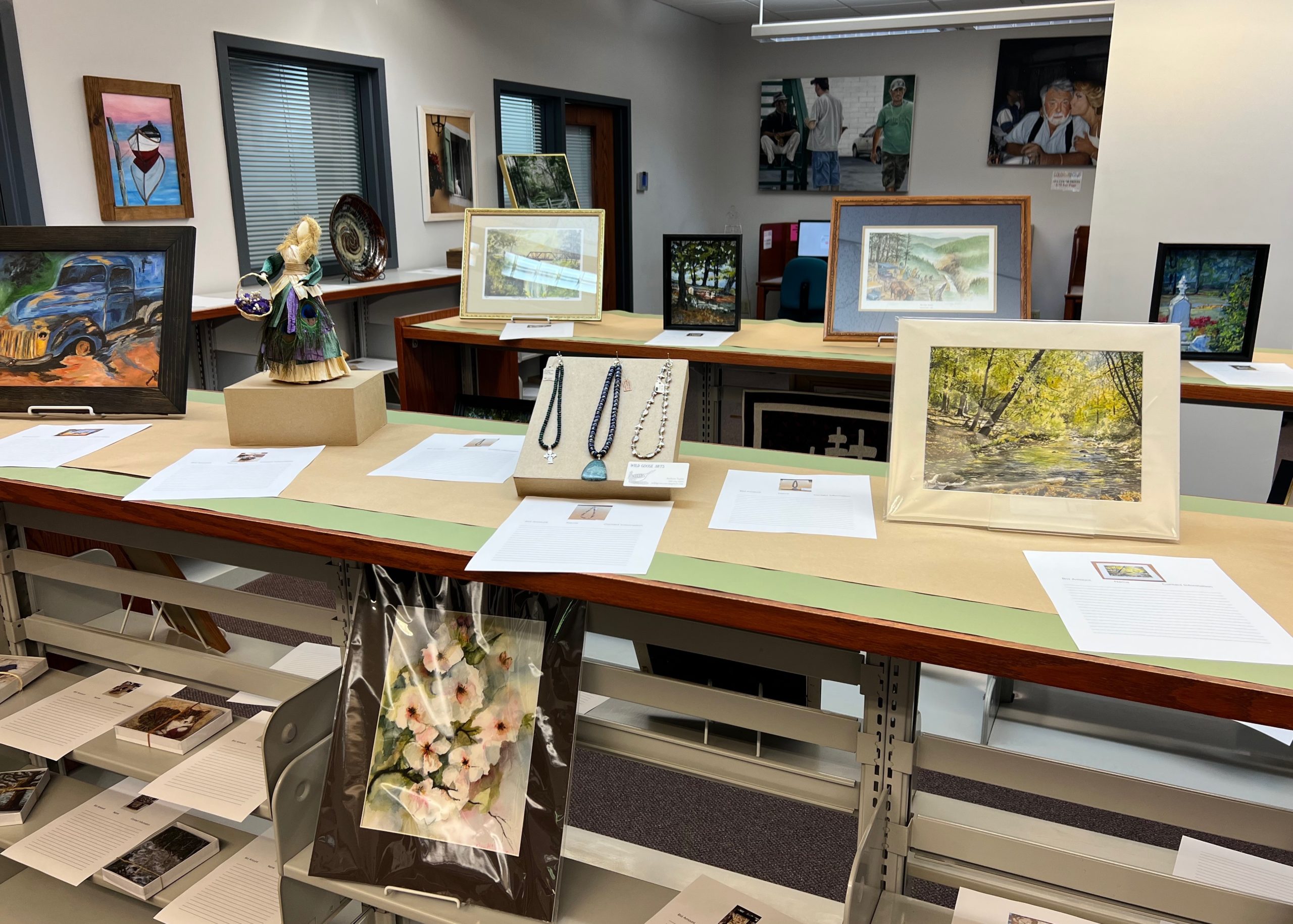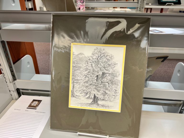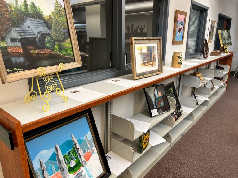 On display in the library is a wide variety of beautiful items from Northeast Georgia artists. Beside each item is a sheet on which to place your bid.