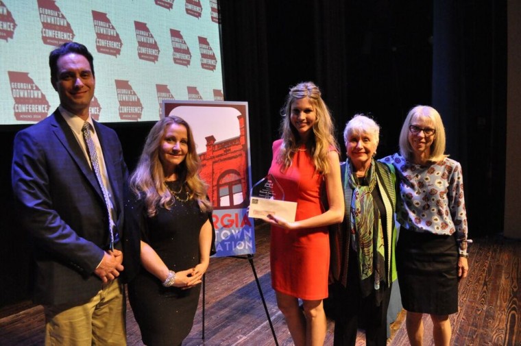 Clarkesville Main Street received the Downtown Excellence-Organization of the Year award from the Georgia Downtown Conference. Pictured (l-r): Danny Bivins, Carl Vinson Institute of Government, Stephanie Aylworth (GDA Board President), Mary Beth Horton, Mayor Barrie Aycock, Deborah Kilgore. (PHOTO/GDA)