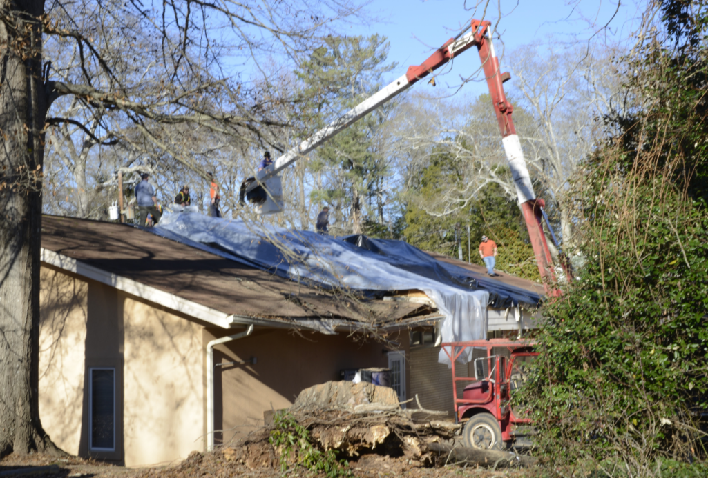 One of the hardest hit areas in Clarkesville was the Rocky Branch Road and Gabrels Drive vicinity. Power crews worked into the evening Sunday repairing service and power transmission lines in the area to restore power to customers. On Monday, Windstream was in the area repairing internet lines in an effort to restore service to their customers.
