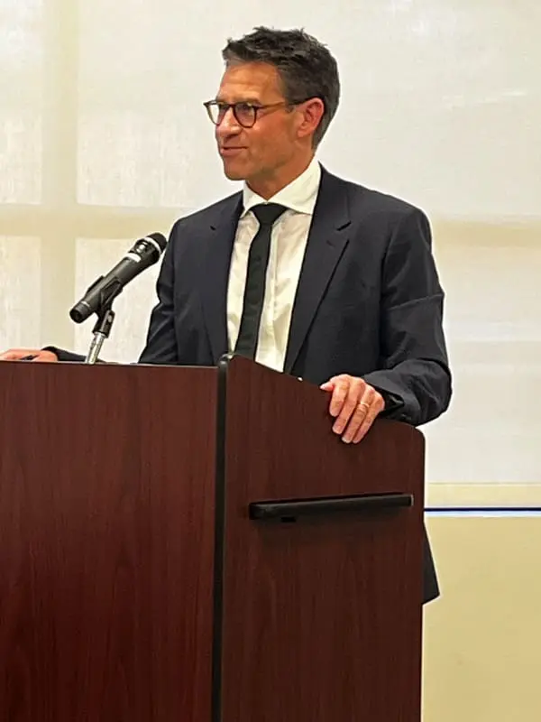 DLBP Inc. President Dominic Lawson speaks to the Cleveland City Council during their final annexation hearing on Monday, March 10, 2025. (Dean Dyer/WRWH.com)