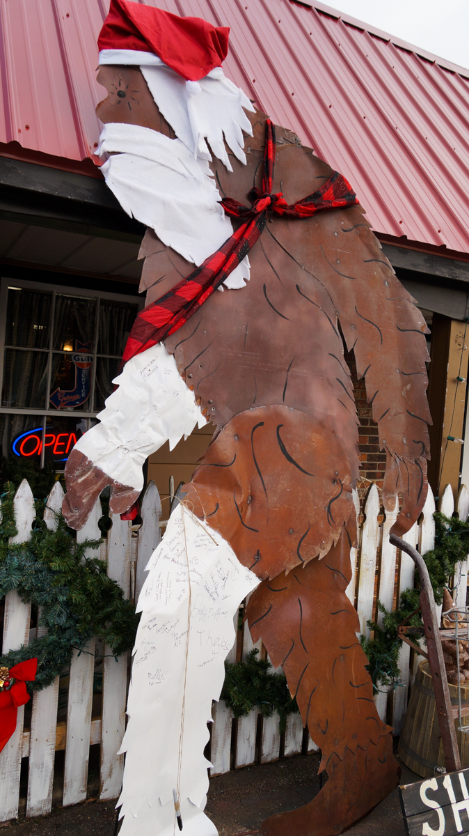 When the Rustic Rooster was saved from major damage by their Bigfoot sculpture in a police chase that resulted in a wreck, Bigfoot became a local hero.