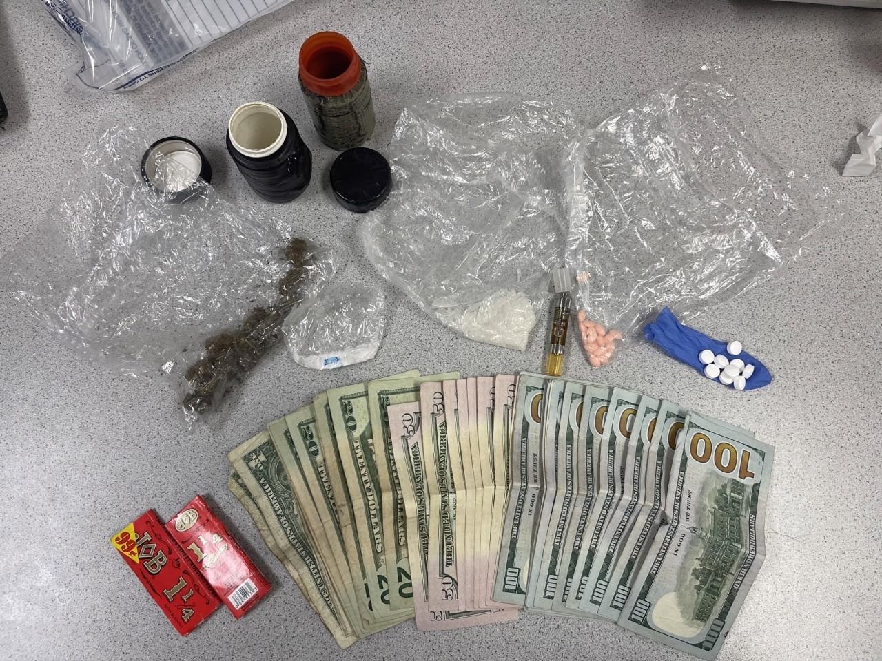 The deputies conducted a search of the underside of the vehicle, where they say they located two small plastic containers wrapped in dark-colored tape, containing methamphetamine, cocaine, oxycodone, Alprazolam (Xanax) and marijuana.