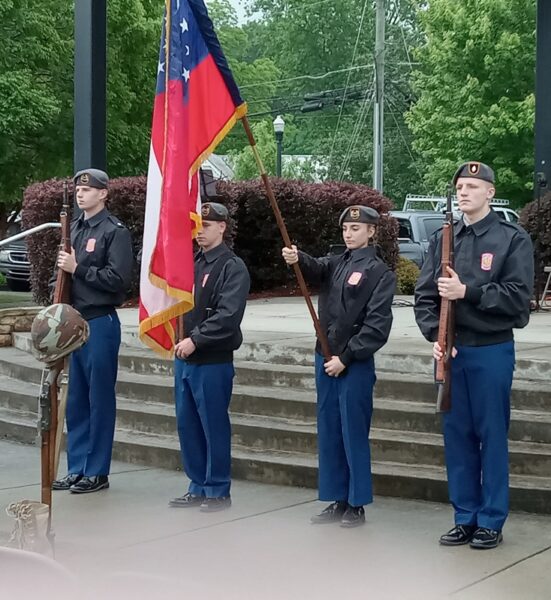 CLEVELAND, Ga. — A Memorial Day service was held Monday, May 26, at Freedom Park in Cleveland. The weather cooperated following some morning showers, and it remained rain-free during the observance. Roy Head Post 16 American Legion Commander Kevin Franks welcomed those attending. There was a salute to all branches of the military, followed by a presentation of colors by the White County High School JROTC.