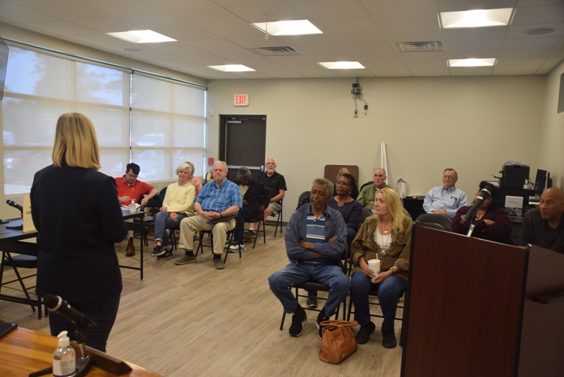 Former City Council member Annie Sutton shares her comments during the town hall meeting. (WRWH.com)