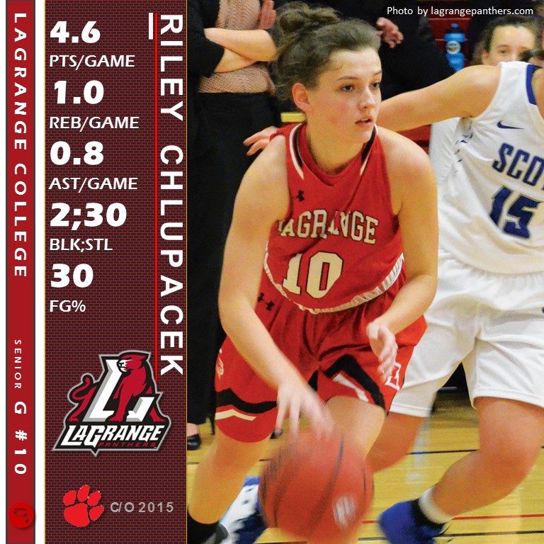 Riley Chlupacek has had much to be thankful for in her solid basketball career, both at the high school and collegiate level. As the senior guard at LaGrange College plays in her final games, she is able to look back at her time on the hardwood with many great memories as she closes a chapter and starts another one.