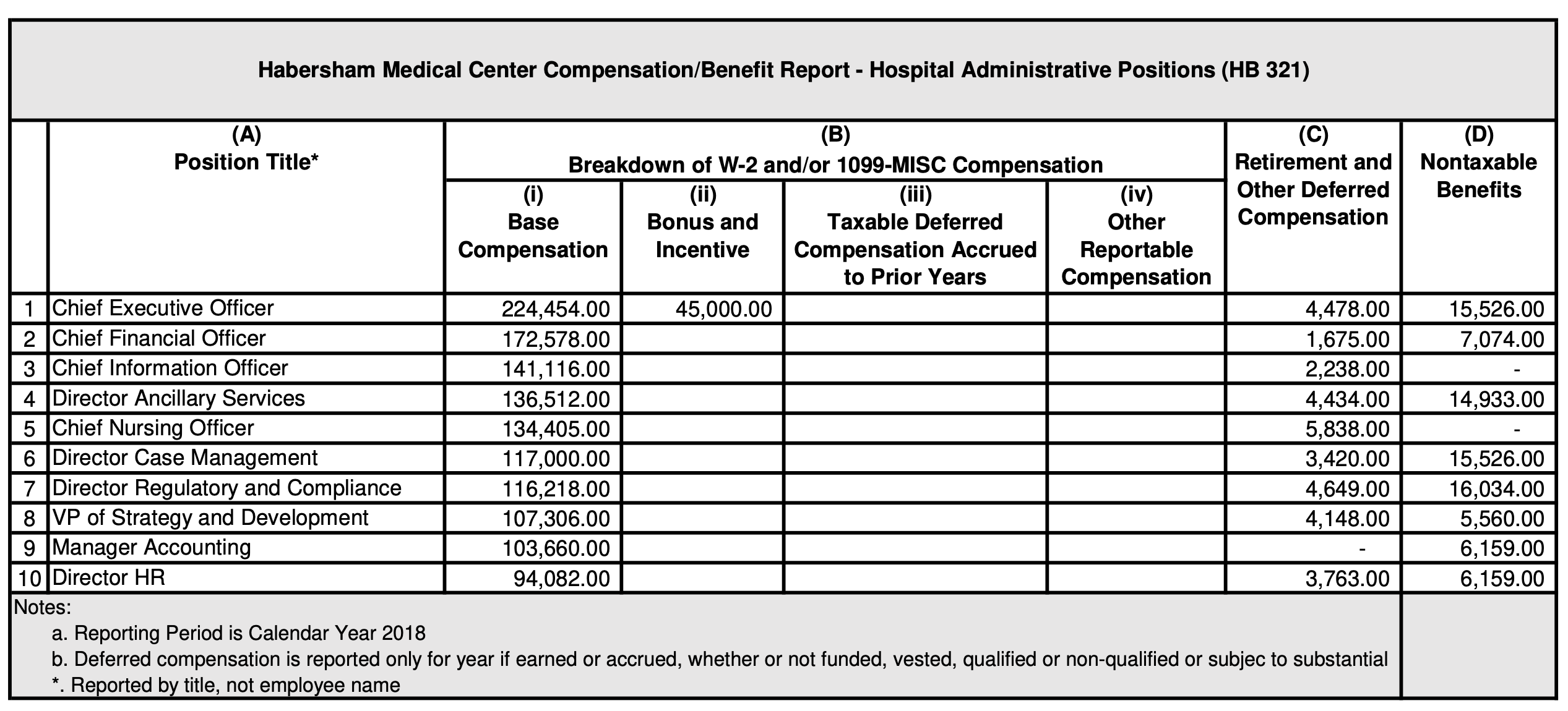 An online search of HMC’s financial records shows that in 2018, salaries for the hospital’s top ten administrative positions amounted to over $1.3 million.