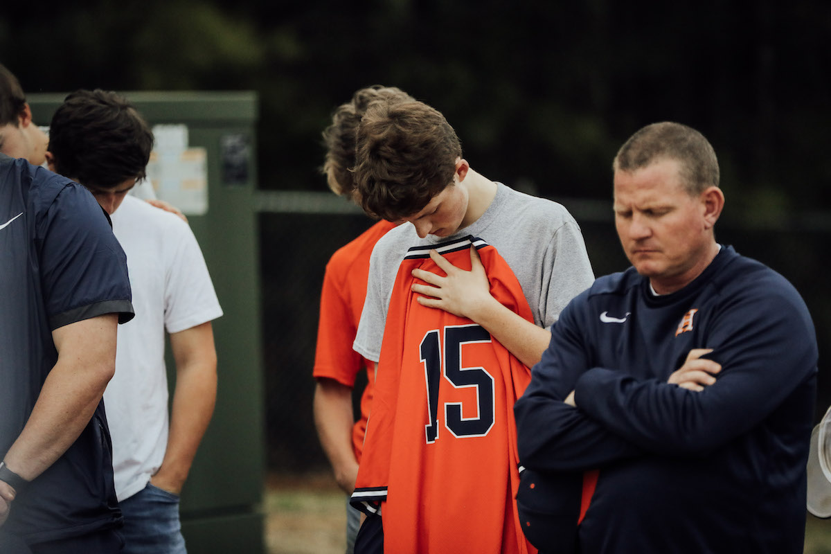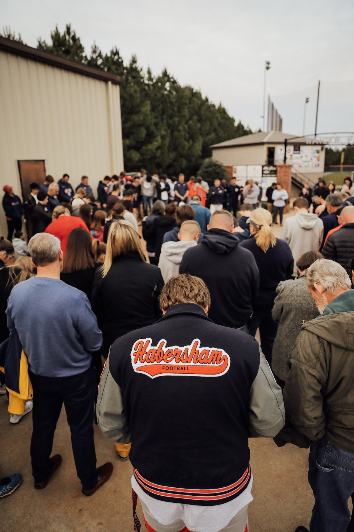 Under a pink sunset, Raider Park sign and athletic field lighting, around 100 people gathered in a circle at Wilbanks Middle School. These people, affected by the Feb. 24 wreck that killed Toccoa businessman, Hayward Cochran Jr., and injured Habersham Central High School student, Hadden Carswell, gathered for a prayer vigil. Teammates, coaches, friends, and family of Carswell, as well as broken-hearted members of the involved communities, offered prayers for Hadden’s healing and peace for Cochran’s family.