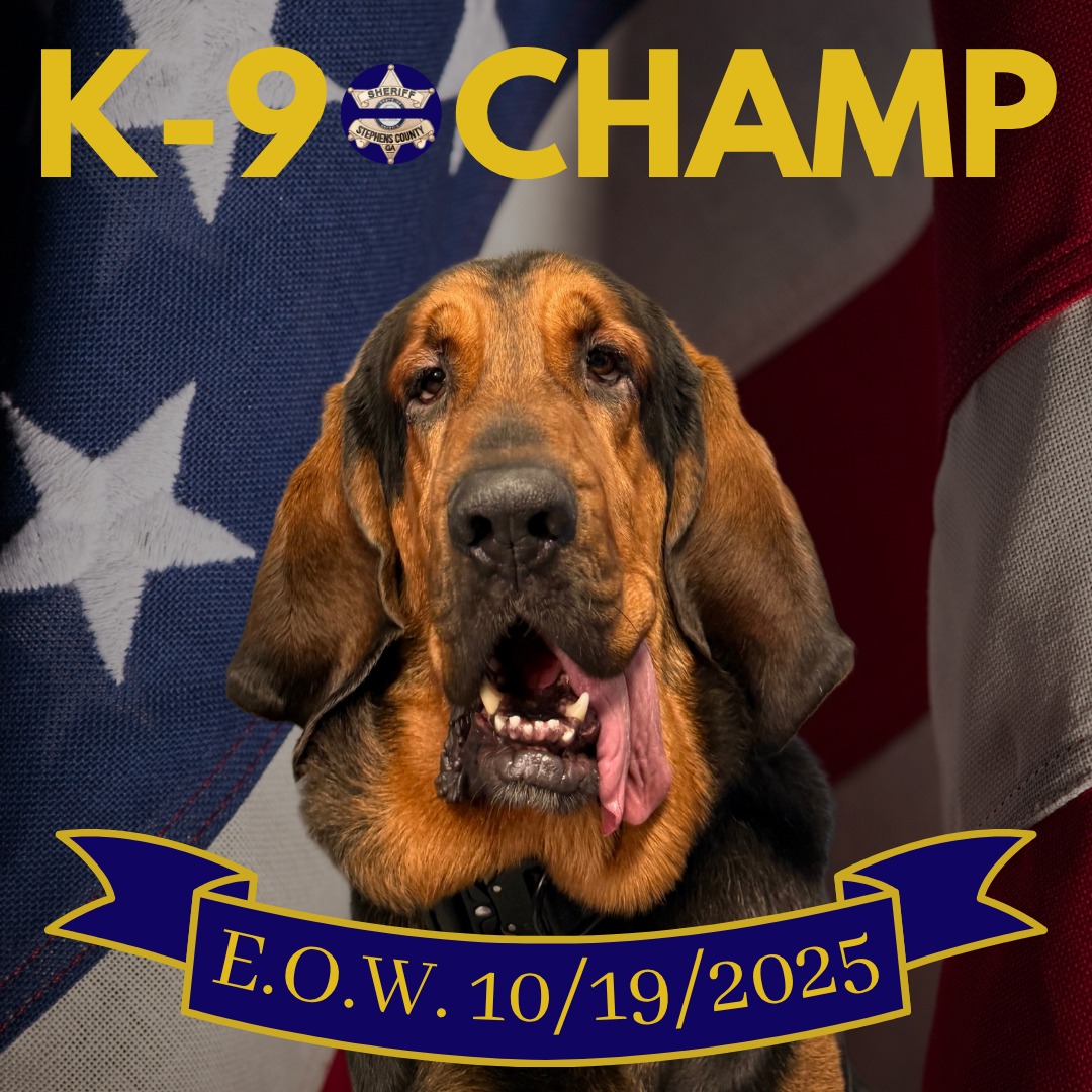 TOCCOA, Ga. — The Stephens County Sheriff’s Office will hold a public memorial service honoring K-9 Champ and his handler, Sgt. Kiser, on Wednesday, October 29, at 4:30 p.m. in the Tugaloo Center for Performing Arts at Stephens County High School.