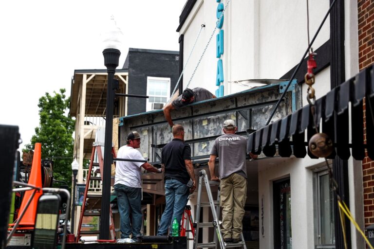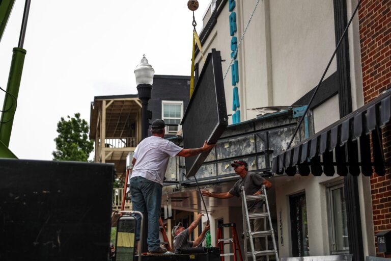“The former marquee was wonderful in its historic sense, and we all have an emotional attachment to the history of the building, but changing the message was not always a simple or safe maneuver,” Singer explains. “Climbing up and down ladders multiple times to grab individual letters directly in the middle of the sidewalk and at the edge of the busy main street was not a safe or comfortable act.”