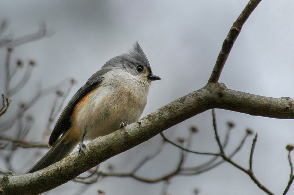 Titmice have a feathered tuft atop their heads which they can smooth out when they want. The more I watch, the more impressed with them I become.