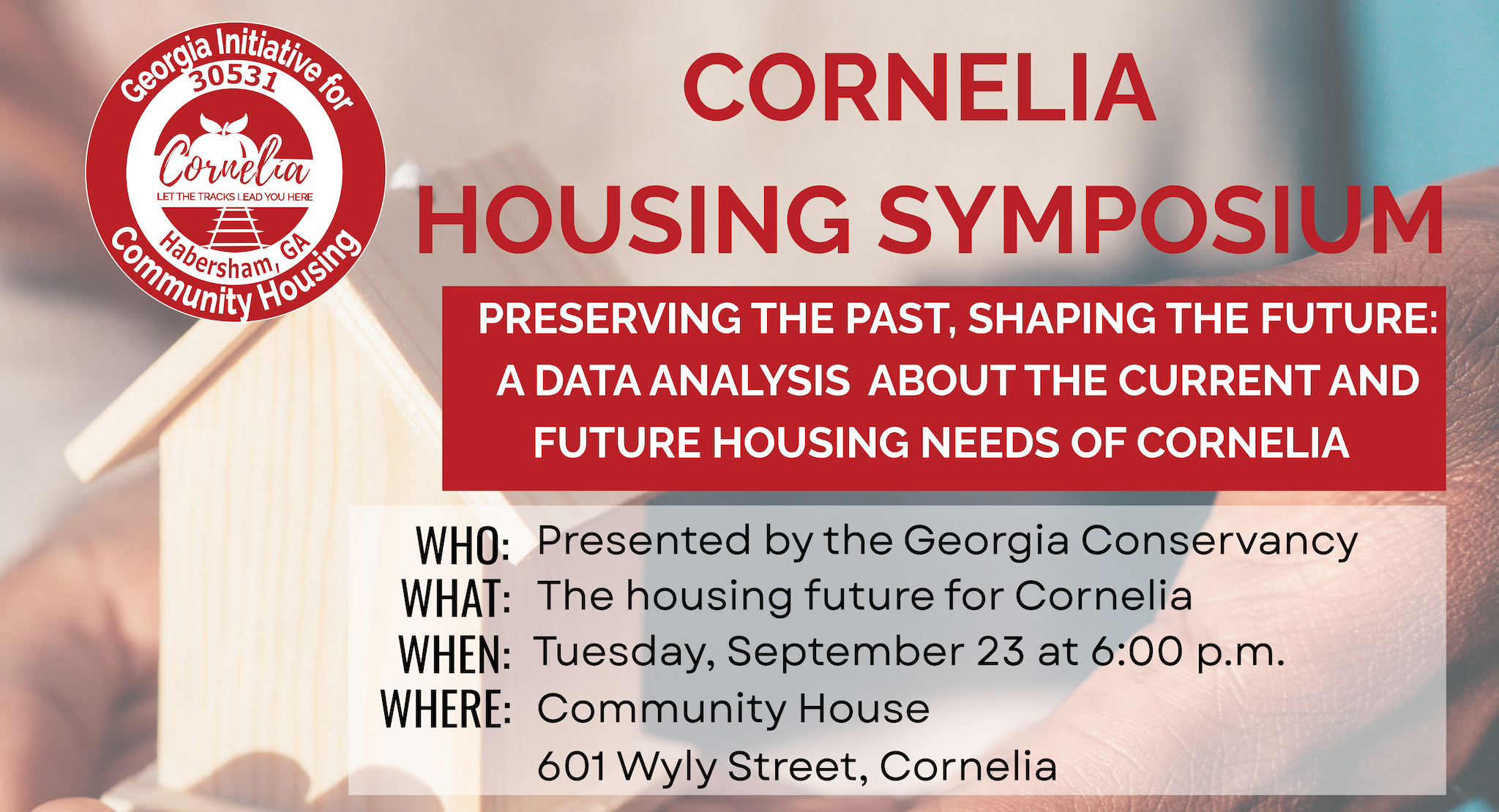 CORNELIA, Ga. — City leaders are inviting the public to take part in a community-wide discussion about Cornelia’s housing future during a special symposium on Tuesday, September 23.