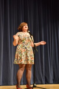 Three students performed in the Middle School Division and each took home a trophy. Charleigh Wilbanks took home top honors with her whimsical rendition of “Taylor the Latte Boy.” Catie Long (“Stuck Like Glue”) placed second and Mariah Peck won third for her rendition of the Adele favorite “Rolling in the Deep.”