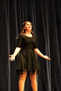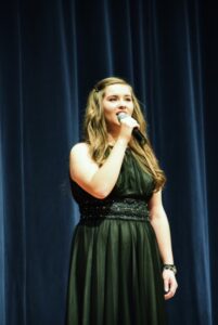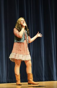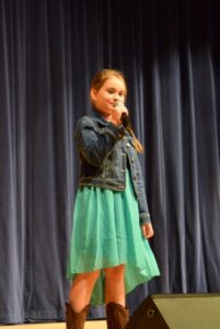The students had to audition for a spot in Friday’s talent show. Shyanne Rinefierd says, “The audition process was quite easy. You had to sign a form and then had to REALLY perform to get a spot for the show.” Kylee Adams who peformed, “Zing Went the Strings of My Heart,” learned about the talent show from her vocal coach, Ms. Lilly of Clarkesville, who helped her rehearse for the big night.