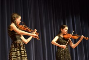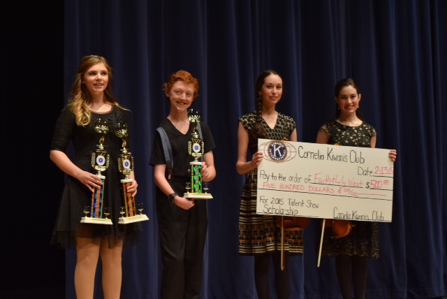 The violin-playing duo of Faith and Lily West won the High School Division and overall talent competition with their outstanding performance of “Death by Triple Fiddle.” They received a trophy, a $500 scholarship and an invitation to perform at the state Kiwanis talent show competition in Albany later this year.