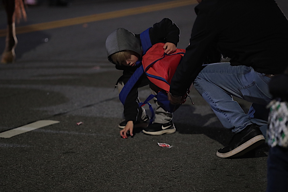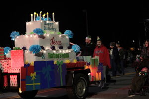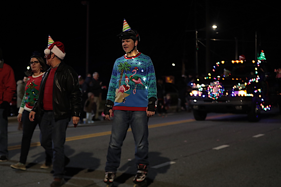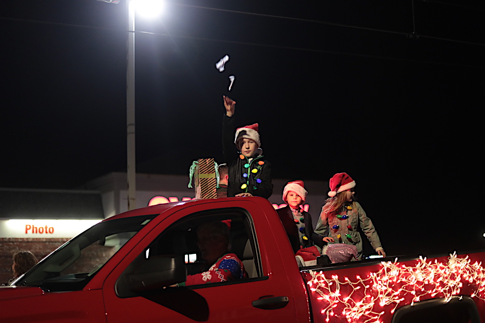 That schedule change may have caused some entries to drop out – the most noticeable absence was Habersham Central High School’s marching Band of Blue – but it didn’t kill the Christmas spirit. There was plenty of cheer in the crowd as WCON Radio pumped Christmas music through speakers into the night air and kids scrambled for candy thrown from the floats.