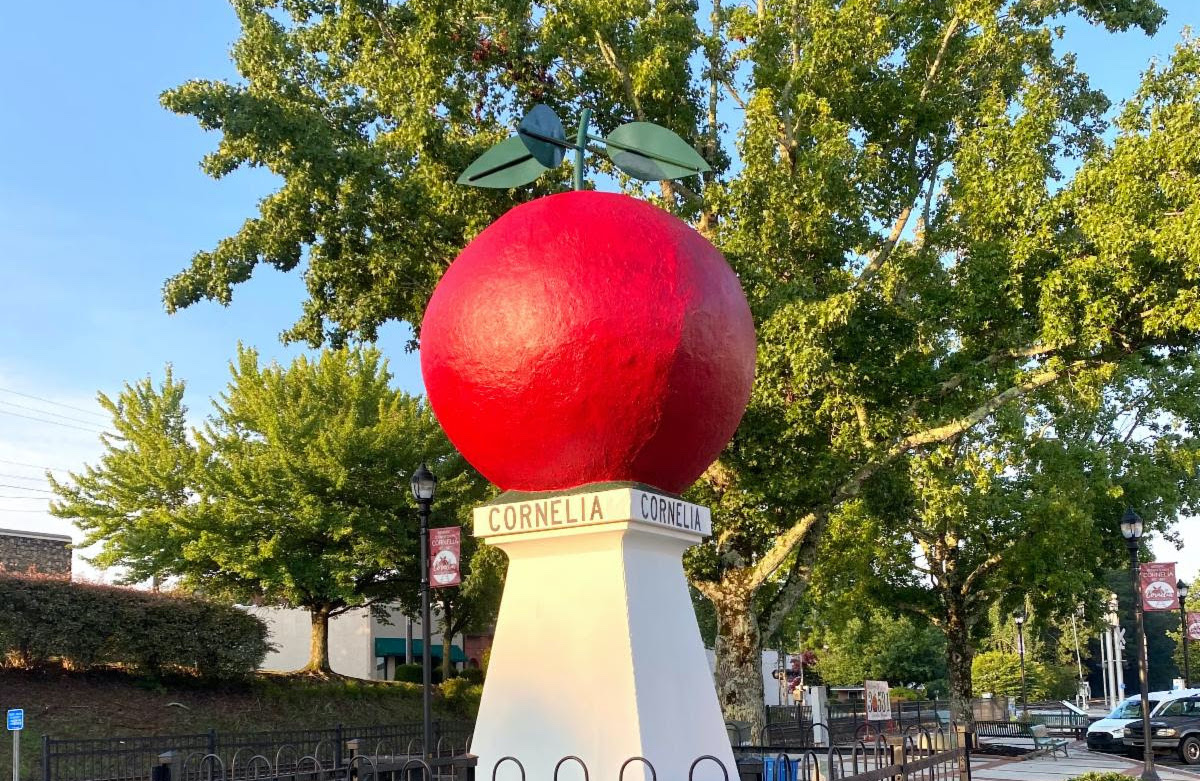 The Big Red Apple in downtown Cornelia has been repainted - again - to return it to its iconic look. (photo courtesy City of Cornelia)